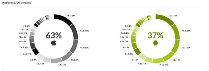 Estas estatísticas permitem que você segmente a sua audiência, de acordo com o sistema operativo do seu dispositivo (iOS ou Android) e também de acordo com o modelo do celular e versão do SO.